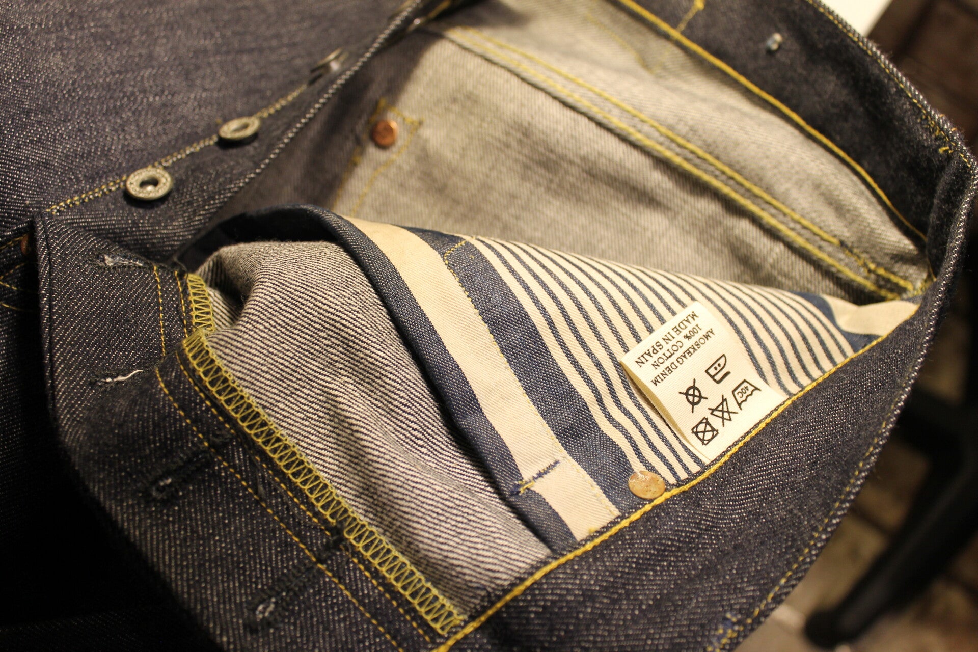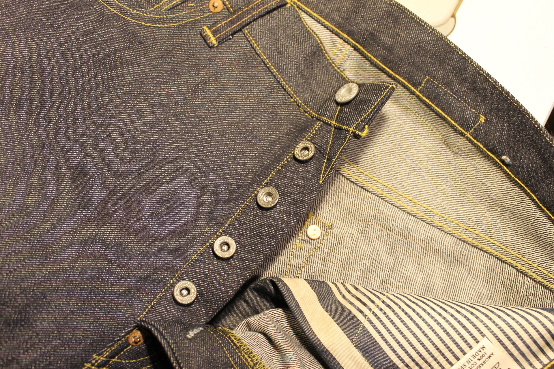 We use only selvedge fabric woven on old looms circa 1920, in 100% cotton from Japan.